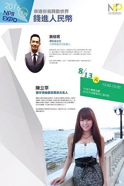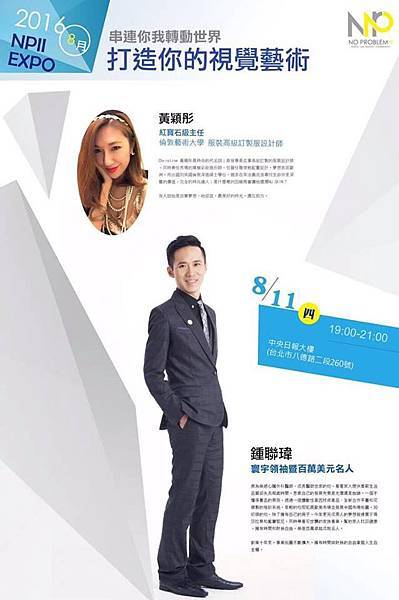 迎接抗衰老博覧會,NP2最佳幸福創業平台特別推出了四大主題活動,場場邀請到各界橋楚來分享他們的經驗,對於想預見更好的自己的你,絕對不要錯過了!