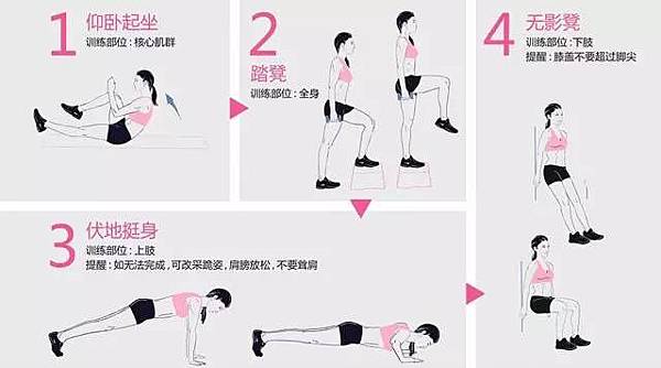 美國運動醫學會(ACSM)在《健康與適能期刊(Health & Fitness Journal)》中指出,只要一張椅子和一面牆,做高強度訓練動作,如仰臥起坐、伏地挺身、撐體、弓步,即可達到降體脂、鍛鍊肌力、提高胰島素敏感度等功效,且宣稱每個動作都經過科學實證。