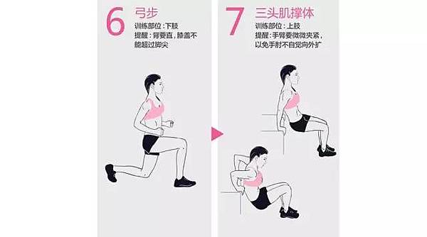 下圖每個動作運動時間30秒,中間休息10秒,再換下一個動作。美國運動醫學會建議,一天可視體力重複幾次,以30分鐘為限。