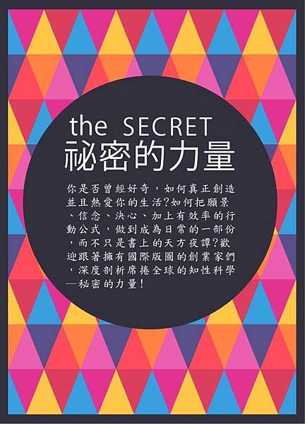 歡迎跟著擁有國際版圖的創業家們,深度剖析席捲全球的知性科學-秘密的力量!