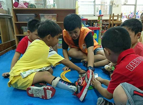 夥伴與小朋友的互動真情流露,綠寶石級主任楊芳晴分享:「這是我第三次來,這是第一次協助重症班級、小天使們都很可愛,待了一下子才發現他們的不一樣。大部分的孩子不太會走路,也不太會說話,有幾個非常好動,抓都抓不住,很心疼這些孩子無法像一班孩子一樣正常活動與生活,也覺得老師非常了不起,感謝老師都很有愛、很耐心的付出。如果我有空一定常來看孩子們,希望有空有愛的朋友們可以一起響應。」