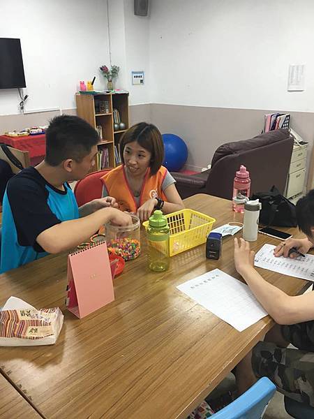 炎炎夏日,夥伴們的熱情絲毫不減,帶著一顆誠摯的心來萬芳啟能中心服務,本次的一日愛心團隊由綠寶石級主任李維庭帶領,與鑽石級主任李紹輔、紅寶石級主任鍾欣穎、饒人竑、邱緯頎、許智絜、吳惠君、曹瑋元、黃金級主任葉如真、吳昆霖、黃奕偉組成,來陪伴服務使用者透過遊戲學習認知生活技能:伴讀故事書、學習加減法、金錢的計算方式和如何在生活上運用,以及陪伴學員寫字、畫畫、聊聊天、主持保齡球比賽等。