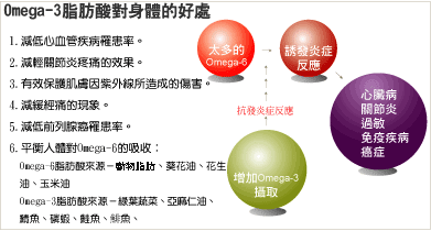 另如美國哈佛醫學院從1989年起對76,283名婦女進行長達10年的研究,證明Omega-3脂肪酸攝入量越高,致命的局部缺血心臟疾病罹患率就相對越低。