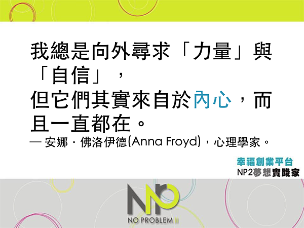 我總是向外尋求「力量」與「自信」,但它們其實來自於內心,而且一直都在。─ 安娜.佛洛伊德(Anna Froyd),心理學家。