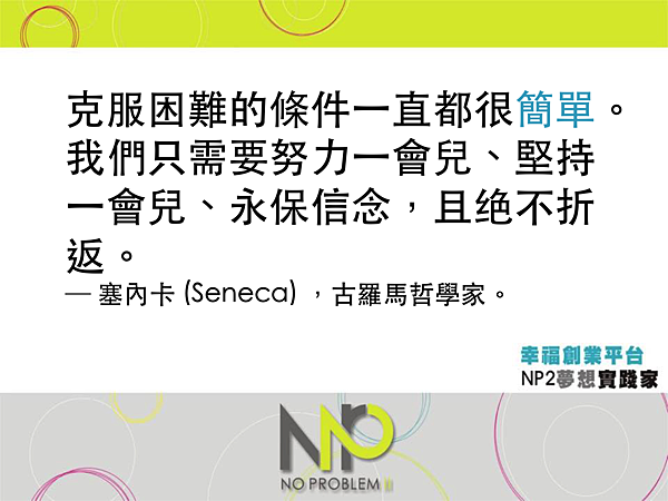 克服困難的條件一直都很簡單。我們只需要努力一會兒、堅持一會兒、永保信念,且绝不折返。