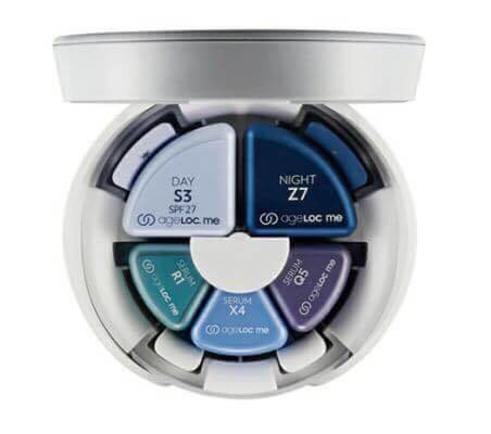 AgeLOC Me其實是一台機器,裡面包含5管原料(智芯),分別是基礎的日霜與晚霜,以及3管分別針對「肌膚緊實」、「細胞代謝」、「色素沉澱」的精華液,而這5管智芯,消費者都可以自行選擇想要的功能和成分。
