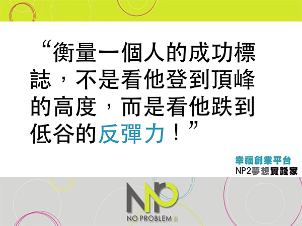 “衡量一個人的成功標誌,不是看他登到頂峰的高度,而是看他跌到低谷的反彈力!“