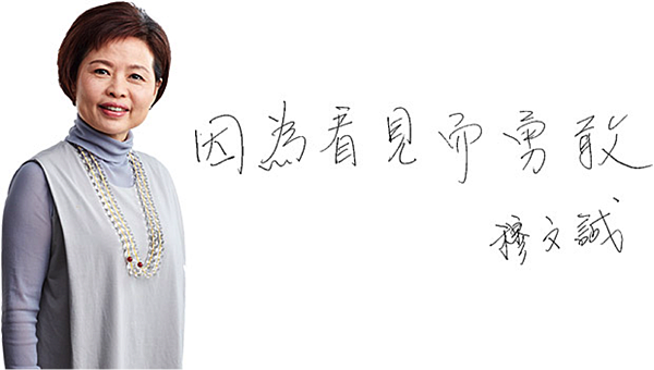 現在的她,活出自信與勇氣,就像一位溫柔慈愛的母親,與平均年齡僅有20、30歲的年輕團隊,用愛和鼓勵,支持著大家不斷往夢想前進。跨越人生谷底、重新出發,她對未來有了新的憧憬,不再害怕、沒有畏懼,因為她相信只要有勇氣就能克服所有困境。