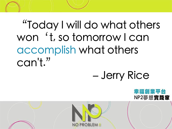 今天我願意做別人不願做的事,因此明天我可以完成別人所無法完成的。