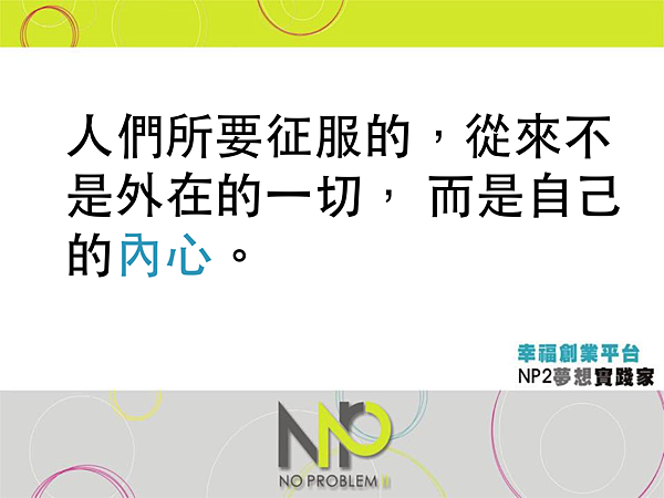 人們所要征服的,從來不是外在的一切, 而是自己的內心。