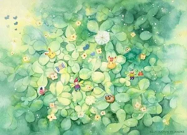 春天的原野裡,走來一隻可愛的小熊,渾身的毛活像天鵝絨,眼睛圓鼓鼓的。它這麼對你說道:「你好,小姐,和我一塊兒打滾玩好麼?」接著,你就和小熊抱在一起,順著長滿三葉草的山坡咕嚕咕嚕滾下去,整整玩了一天。