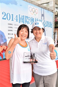 2014年 3 月 ,台北國道馬拉松在清晨鳴槍開跑,來自全球 20 個國家,共計一萬多名選手,在天色微亮中,邁開步伐迎風奔馳,其中有一位「阿嬤」級的選手也奮勇向前⋯,比賽終了,她脫穎而出,在分組排名中勇奪第一名殊榮!